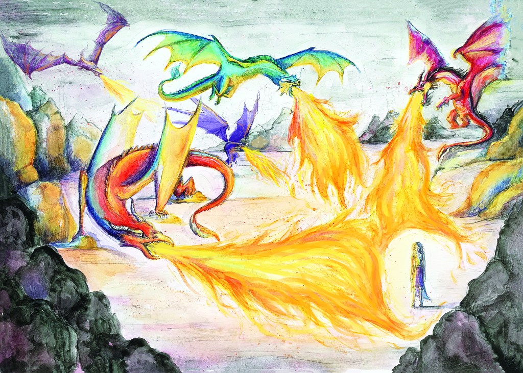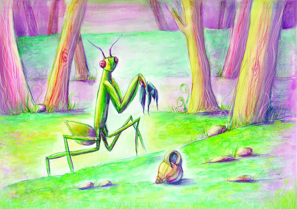 However, obstacles soon appear. First, a gigantic beast swallows them. When they escape, an enormous crab threatens them. And their situation gets worse. They encounter spiders, cockroaches, and a cherry-eating snake who sees them as tasty meals, and an indecisive dragon confronts them. On the whole, Badfreaky stays calm, and uses her powers to help everyone along the way, even when her companion advises otherwise.